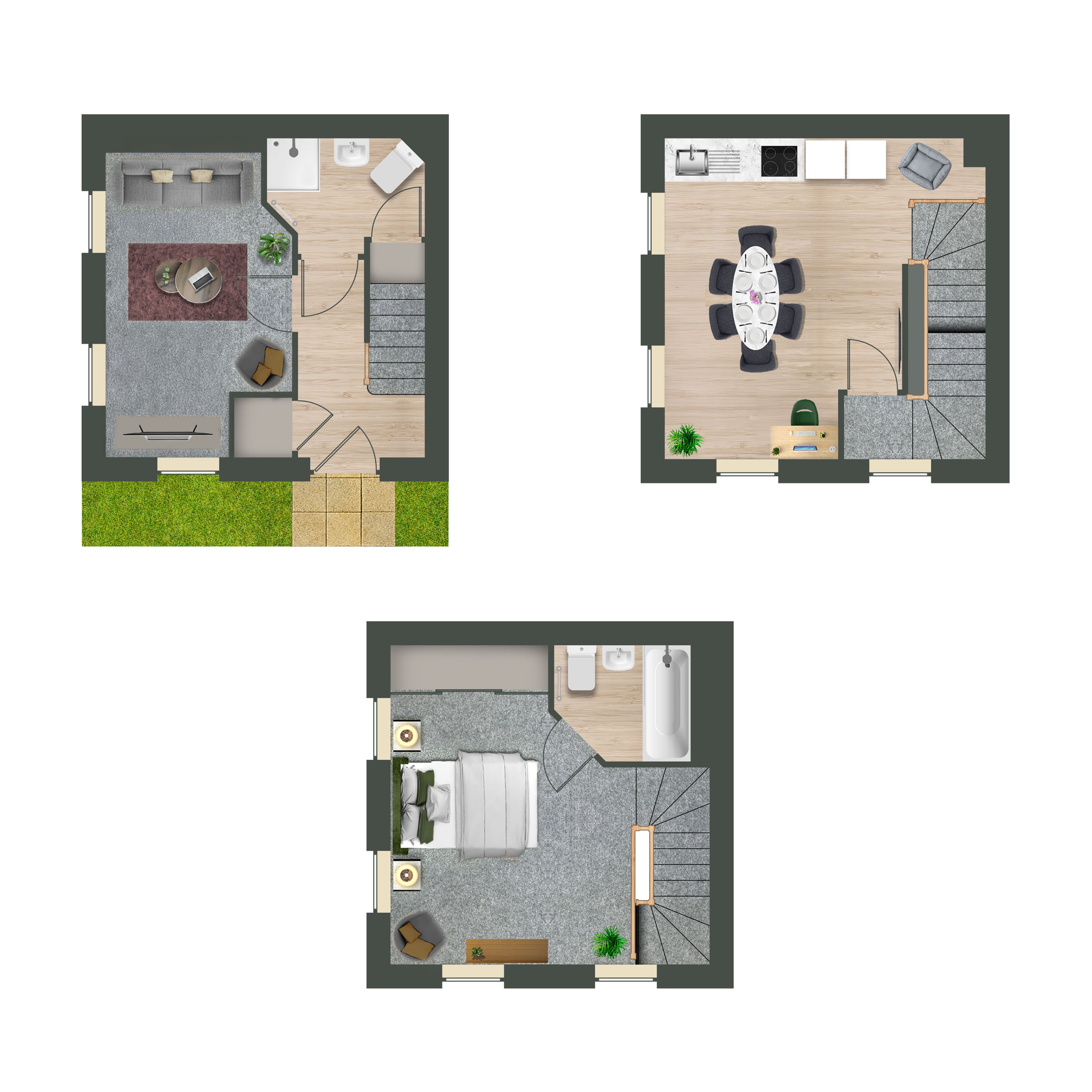 Our 3-bedroom homes are available in a range of sizes and styles, including semi-detached and detached options - perfect for professionals, sharers, couples and families wanting the extra space to work, live or grow.
